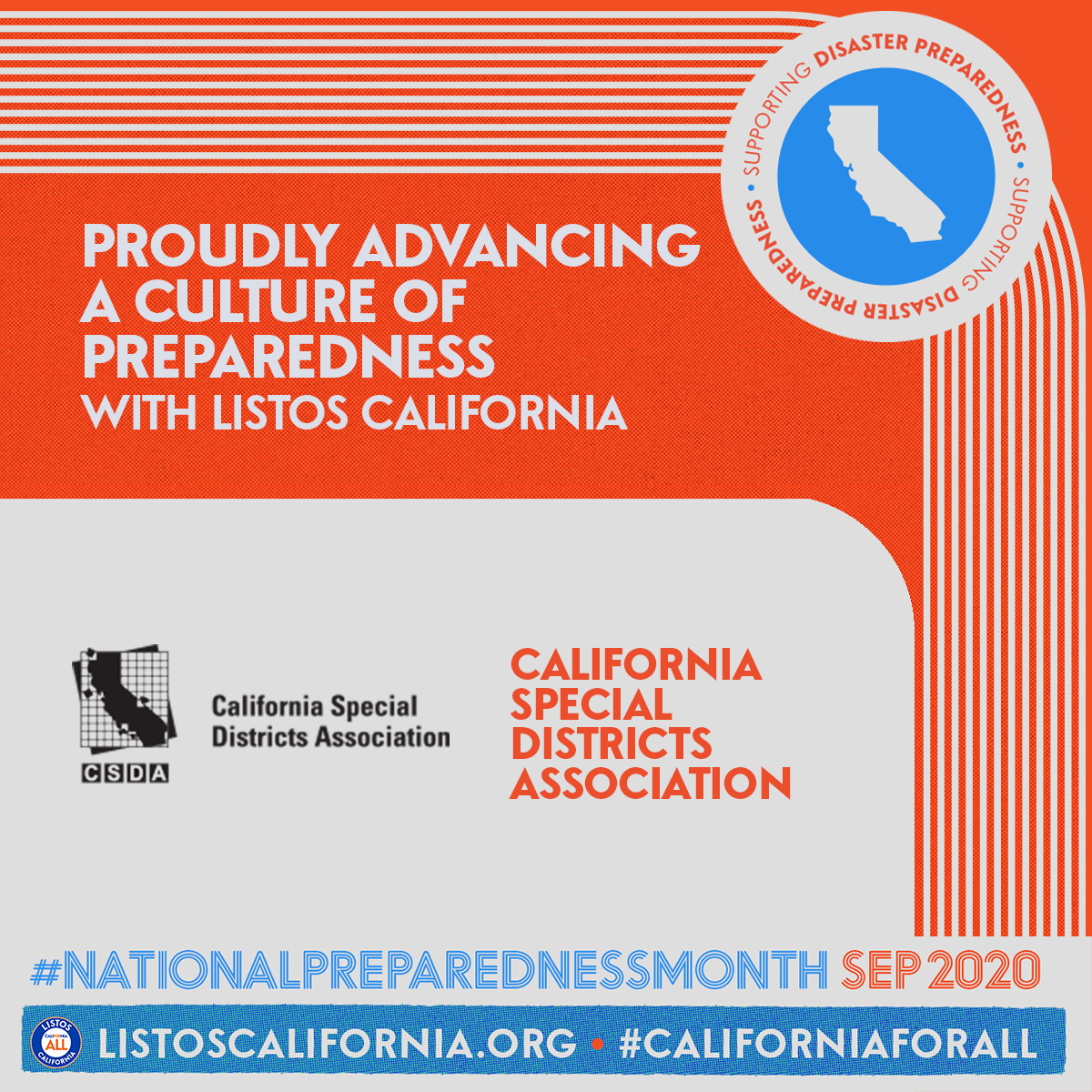 CSDA has joined forces with the League of California Cities, California State Association of Counties, Rural Representatives of California, and Institute for Local Government to adopt Listos California’s accessible and free 5 steps to prepare for disaster and