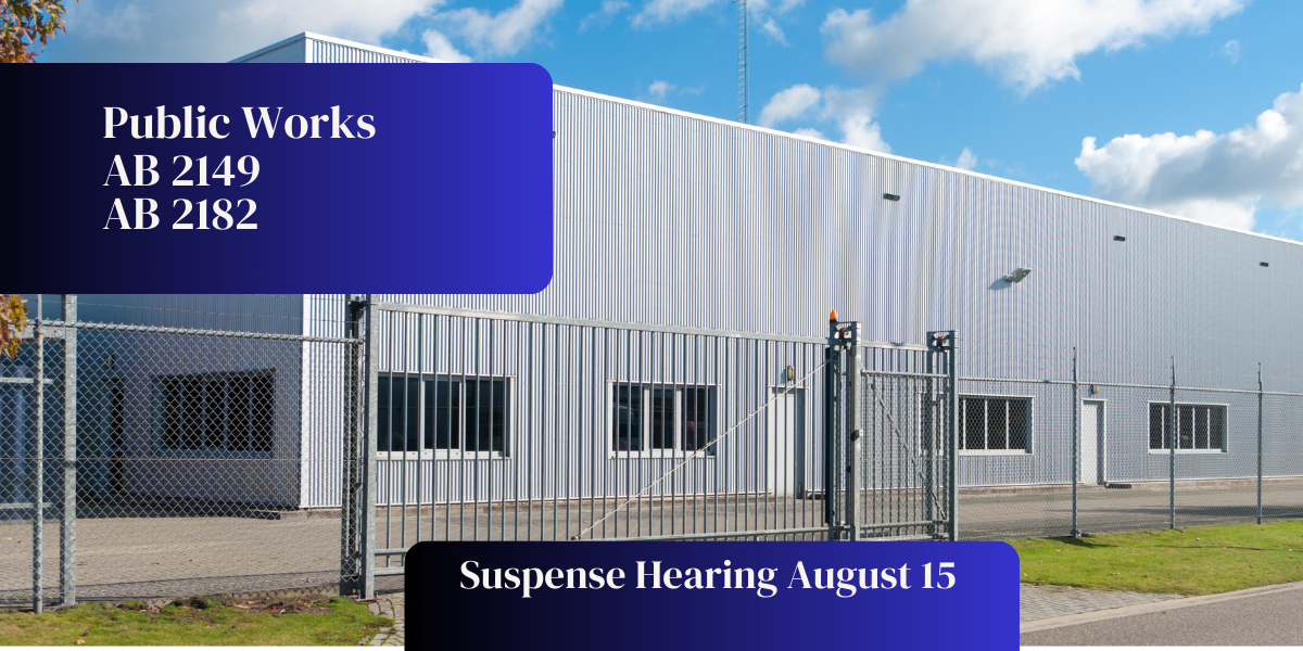 AB 2149 (Connolly) and AB 2182 (Haney), two public works measures that CSDA is engaged in, have been placed on the California State Senate Appropriations Committee suspense file due to the potentially significant costs they would mandate in the State of California.