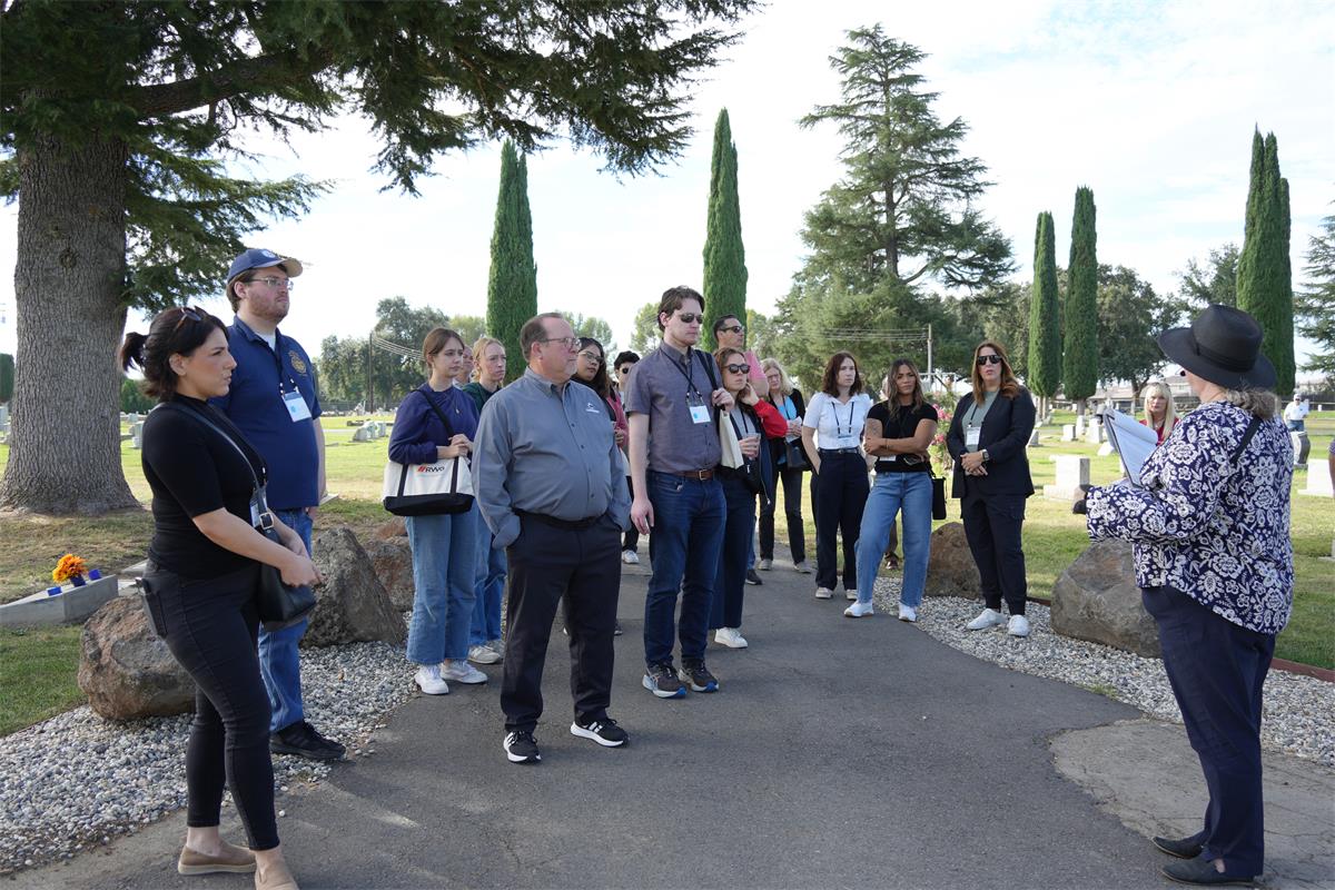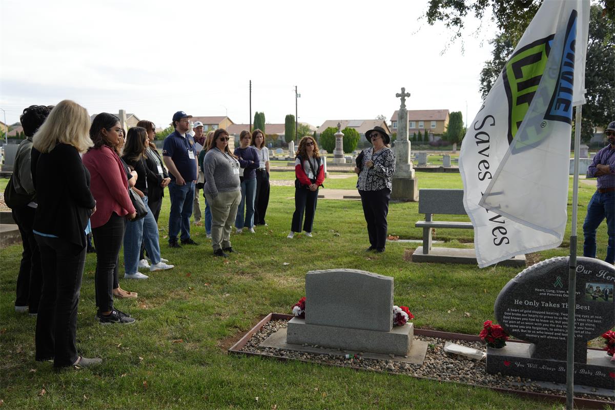 The tour kicked off with a visit to the Galt-Arno Cemetery District, where District Manager Belinda Ellis shared the ongoing challenges of maintaining an aging well and irrigation system, as well as the financial strain caused by the state’s mandate to transition from gas-powered to fully battery-operated landscaping equipment. Legislative staff also gained a behind-the-scenes look at what a burial service entails.