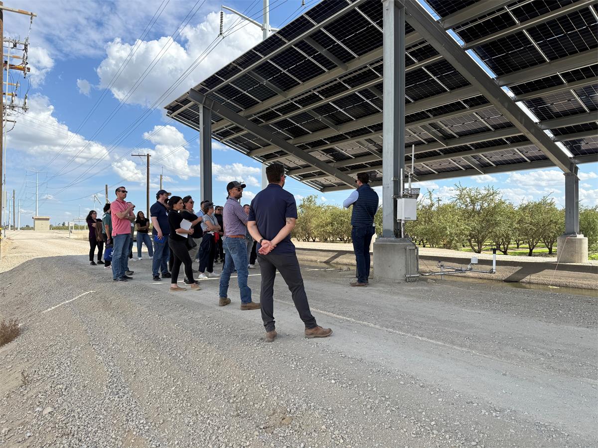 Our second stop took us to the Turlock Irrigation District, where Director of External Affairs Josh Weimer introduced staff to Project Nexus – a collaboration with UC Merced that installs solar panels across irrigation canals to generate power while reducing water evaporation. The group also learned about TID’s innovative efforts to create a closed system by incorporating a holding pond to help meet water needs during peak seasons.