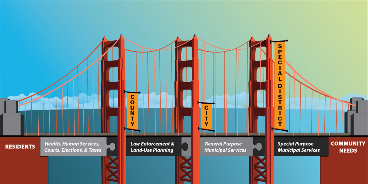 California’s communities are diverse in the nature and extent of public services they need. The result is a network of public service agencies, each with a purpose under state law. Within this framework, special districts are formed, governed, and “owned” by the community. They are created to meet the essential needs of local families and economies, and are directly accountable to the communities they serve.